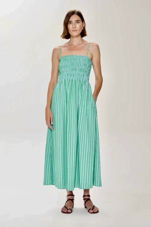Bianca Shirred Bodice Stripe Dress in blue/green by Pistola
