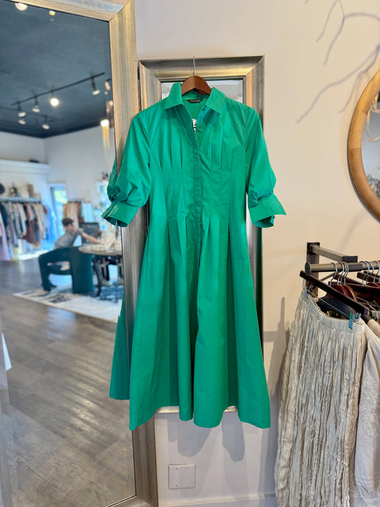 Poplin 3/4 Sleeve Dress with Darted Waist in green by Dolce Cabo