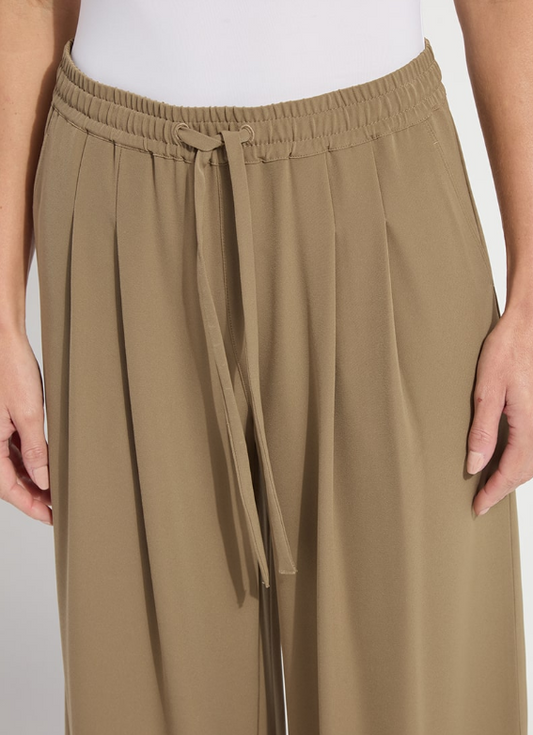 Mae Pleated Drawstring Wide Leg Pant in olive leaf by Lysse