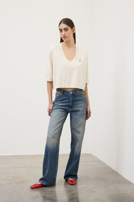 Whitney Pointelle Sweater in soft natural by Dylan