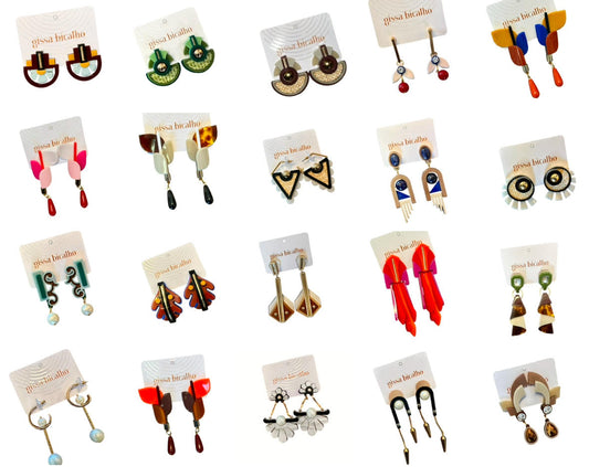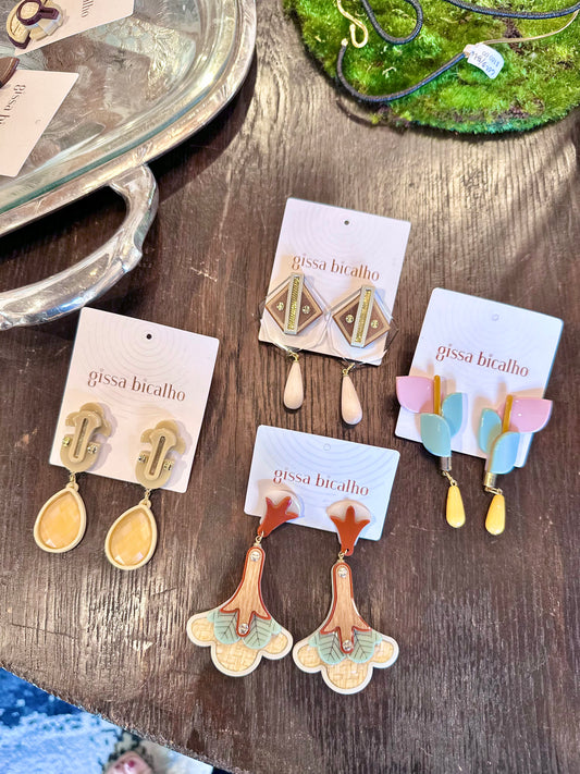 Acrylic Courtain Earrings in granite caramel by Gissa Bicalho