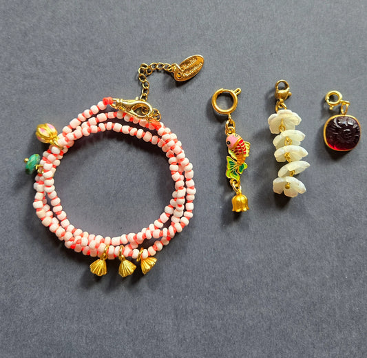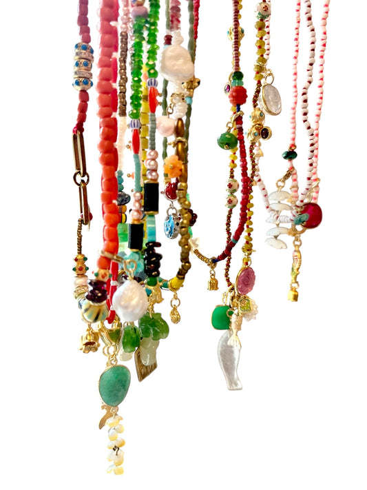 Beaded Charm Necklace in pink by Meredith Waterstraat