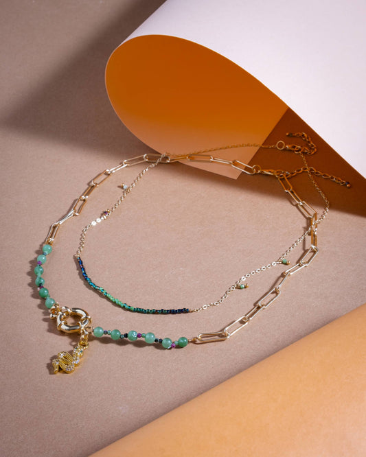Beaded Charm and Chain Layering Necklace Set/2 (Jungle)