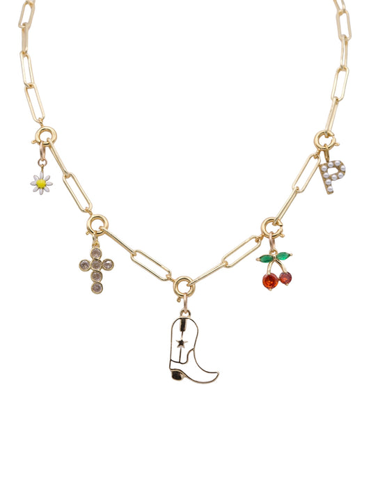 Charm Bar- Pretty Little Layer Fancy Necklace in gold by Farrah B