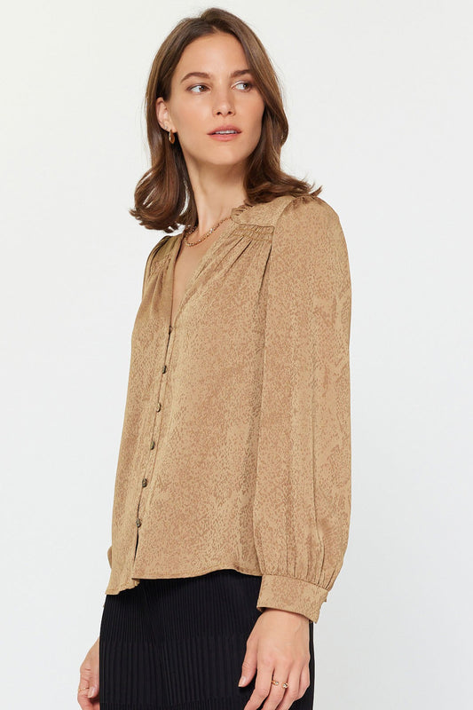 Split Neck Blouse with Ruffled Neck in bronze by Current Air