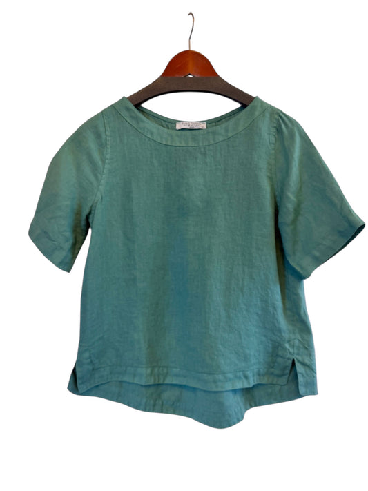 Short Sleeve Linen Top in emerald by Haris Cotton