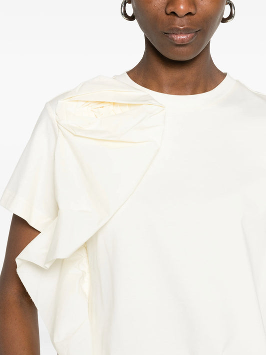 Short Sleeve Poplin Top with Flower Detail in ivory by Psophia