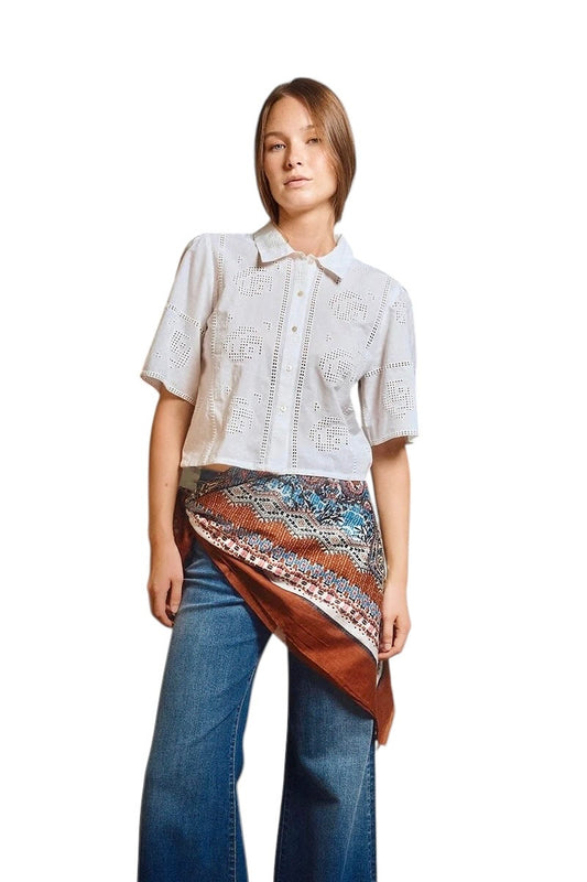 Openwork Embroidery Crop Shirt in off white by Molly Bracken