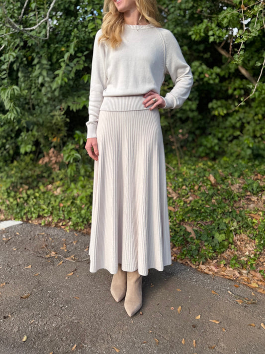 Shirred Sleeve Crewneck Sweater in ivory by Lilla P