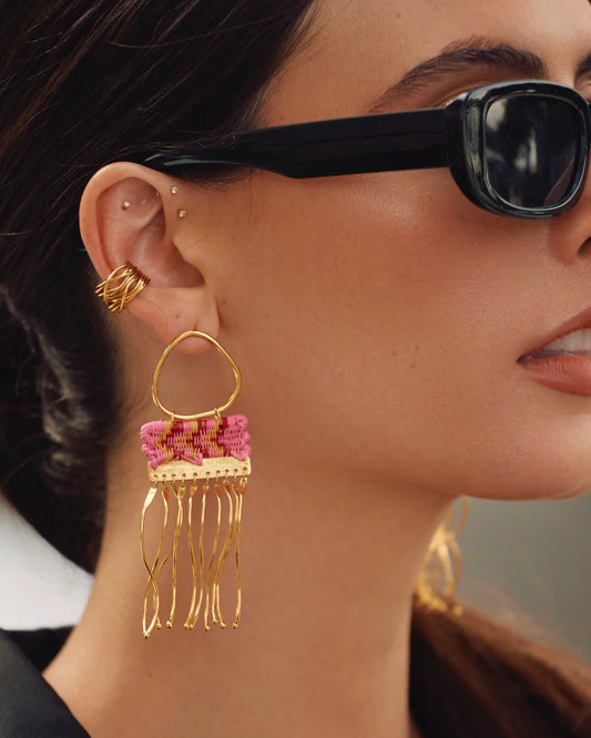 Barlovento Mini Earrings in gris/blanco/ochre by Bamboleira