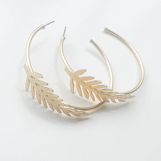 Wide Wavy Leaf Hoop Earring in gold by Virtue