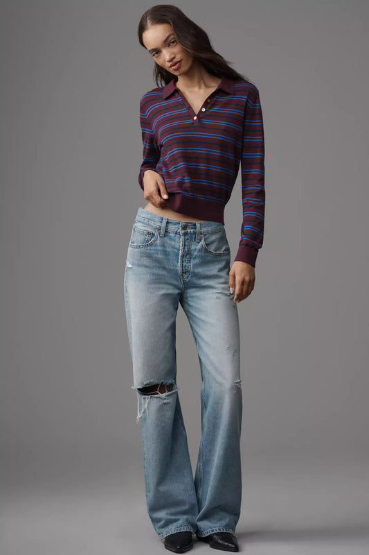 Greta Long Sleeve Stripe Polo Sweater in claret azure by Pistola