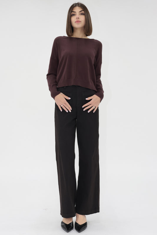 Pema Drop Shoulder Sweater in dark fig by Another Love