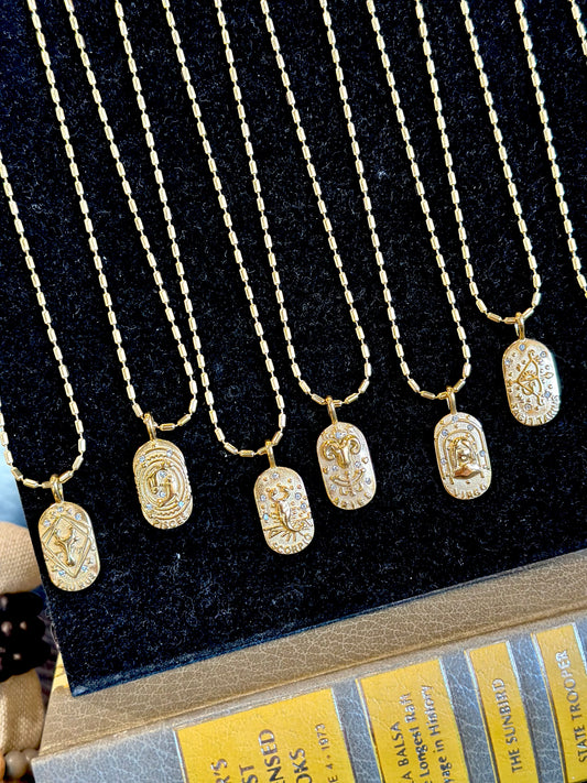 Spotlight Zodiac Necklace in gold by Farrah BVendor:Farrah BRegular price $45.00 USDRegular priceUnit price / per-