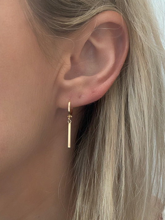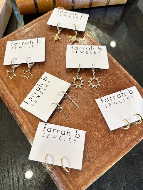 Charm Bar- Larger Hoop Huggie Earrings in gold by Farrah BVendor:Farrah BRegular price $34.00 USDRegular priceUnit price / per-