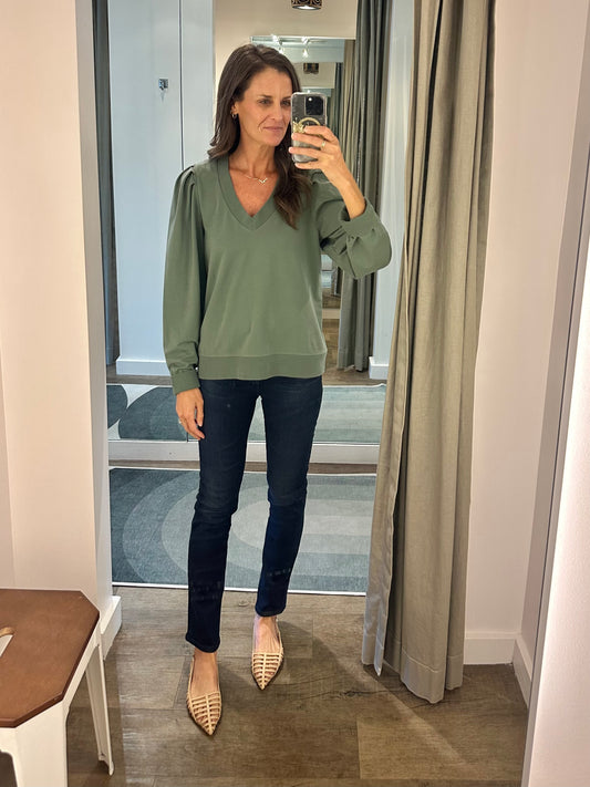 Sammi V-Neck Sweatshirt in slate green by Another LoveVendor:Another LoveRegular price $56.00 USDRegular priceUnit price / per$75.00 USDSale price $56.00 USDSale