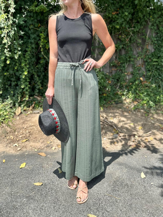 Linen Stripe Wide Leg Pants in army by Haris CottonVendor:Haris CottonRegular price $78.00 USDRegular priceUnit price / per$104.00 USDSale price $78.00 USDSale