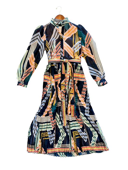 Geo Print Midi Dress with Pleated Skirt in multi by Stellah