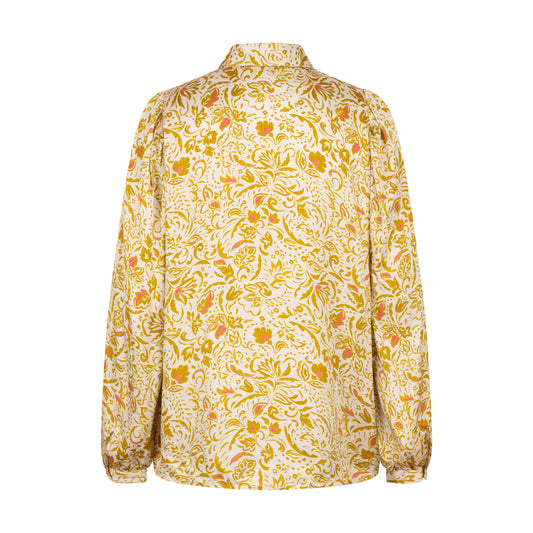 Long Sleeve Button Up Cheerful Printed Blouse in mustard by Esqualo