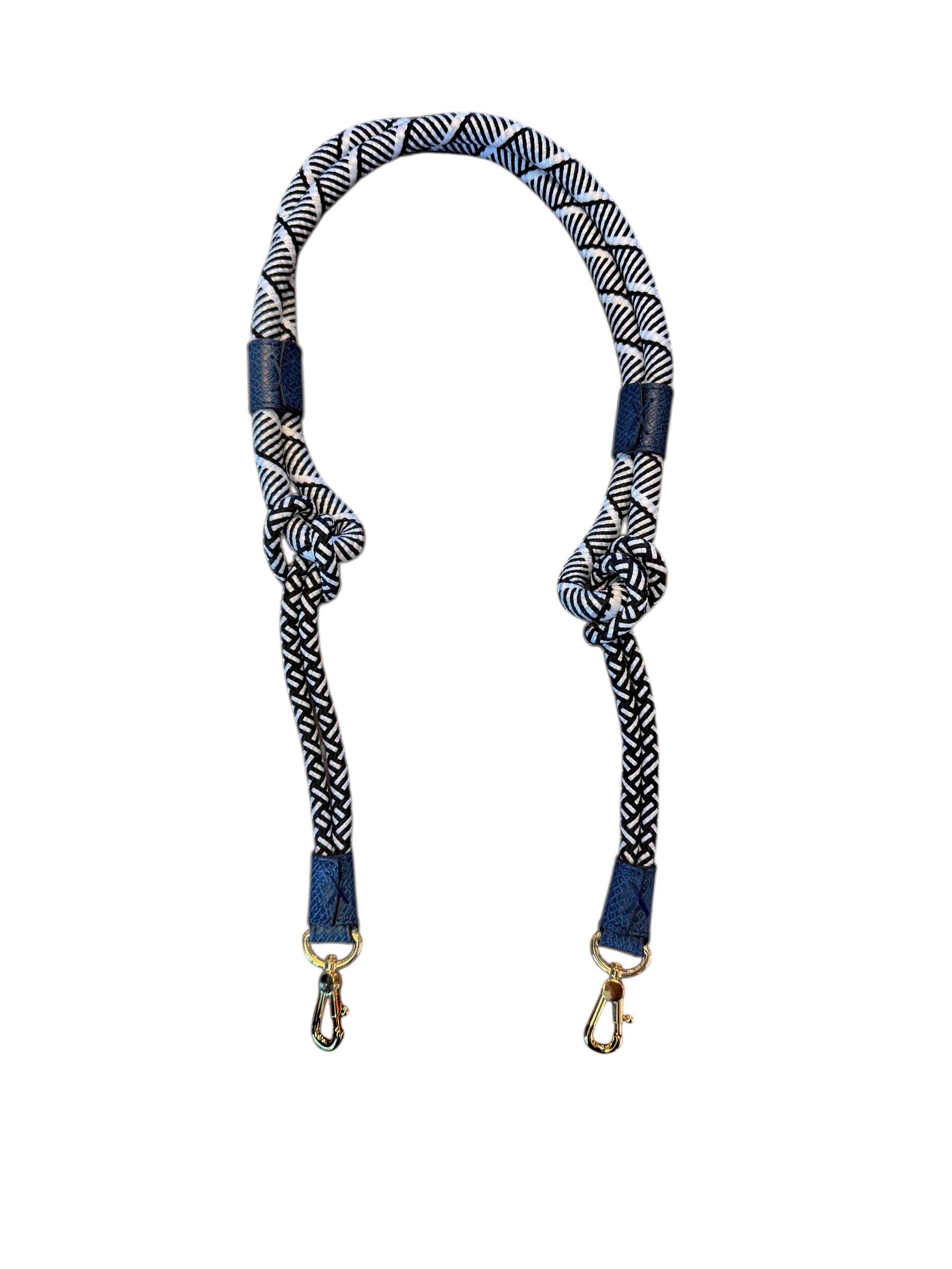 Add a splash of fun and flair to your handbag with this handmade braided nylon strap! Featuring a lively black and white rope blend paired with dark blue reticulated leather accents, it fits comfortably on your shoulder while turning heads everywhere you go. Durable and stylish, this strap lets you mix up your look with ease and a playful twist.