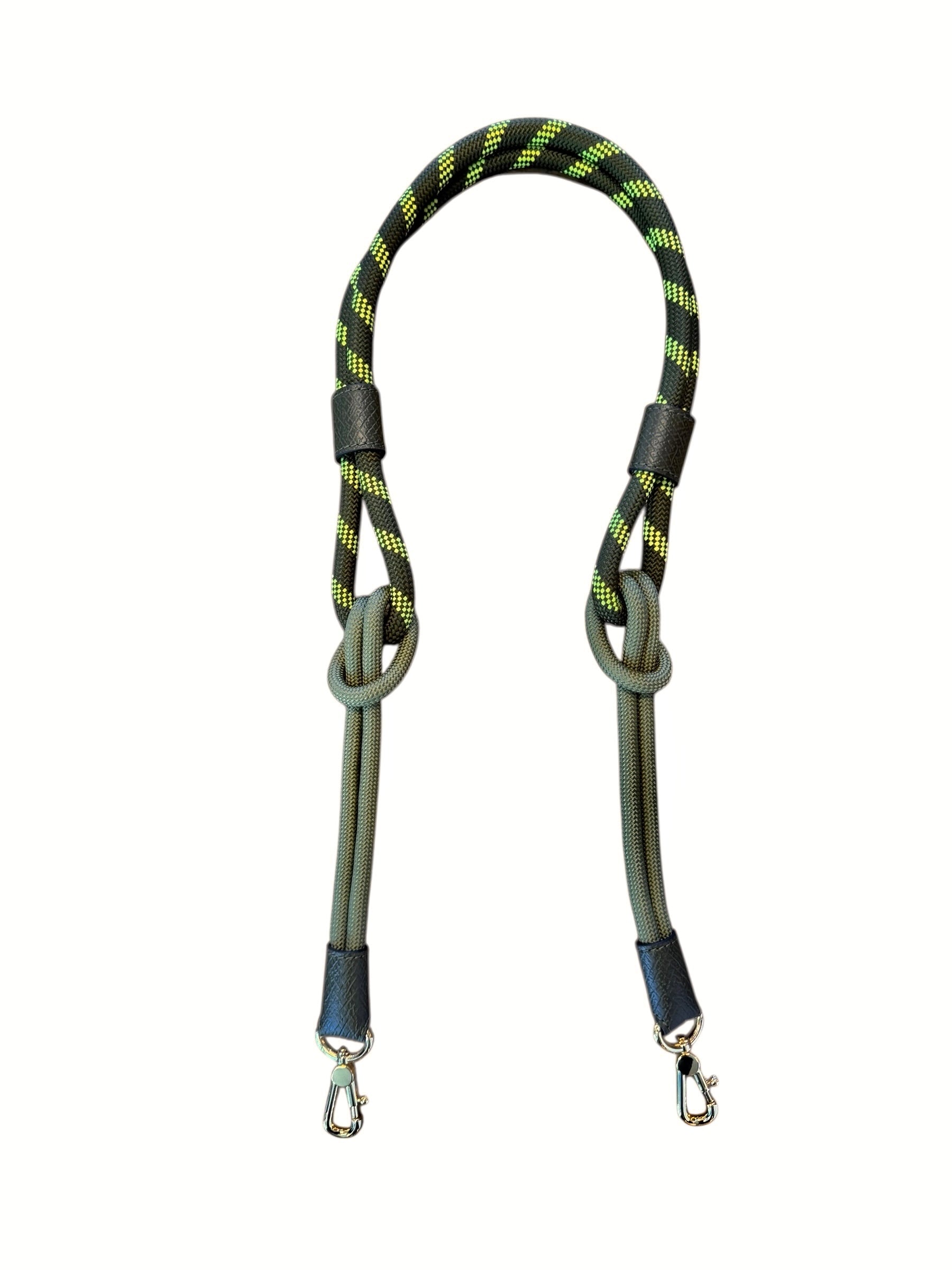 Add a fun twist to your favorite bags with this handmade braided nylon strap! Featuring a rich dark green rope intertwined with forest green reticulated leather, it’s both durable and stylish. Perfect for carrying your essentials comfortably while turning heads with its playful, textured design. Upgrade your handbag game effortlessly!