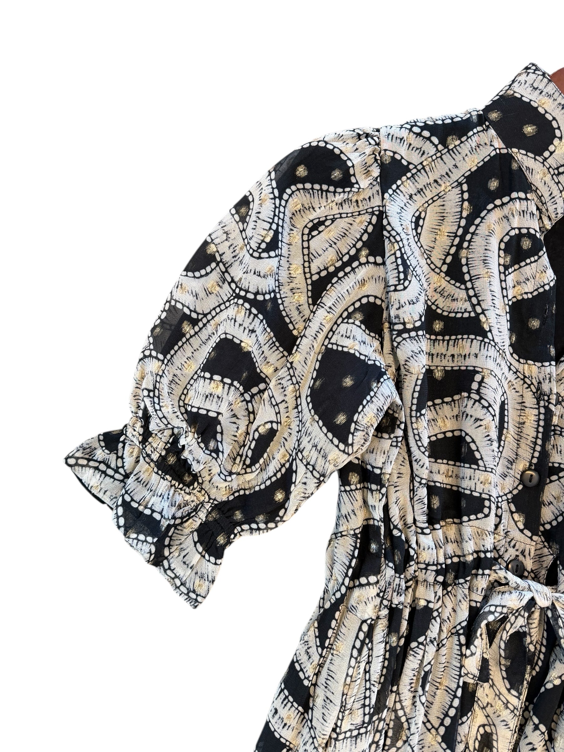 Catherine Shirt Dress in holiday geo cream by Holly Shae