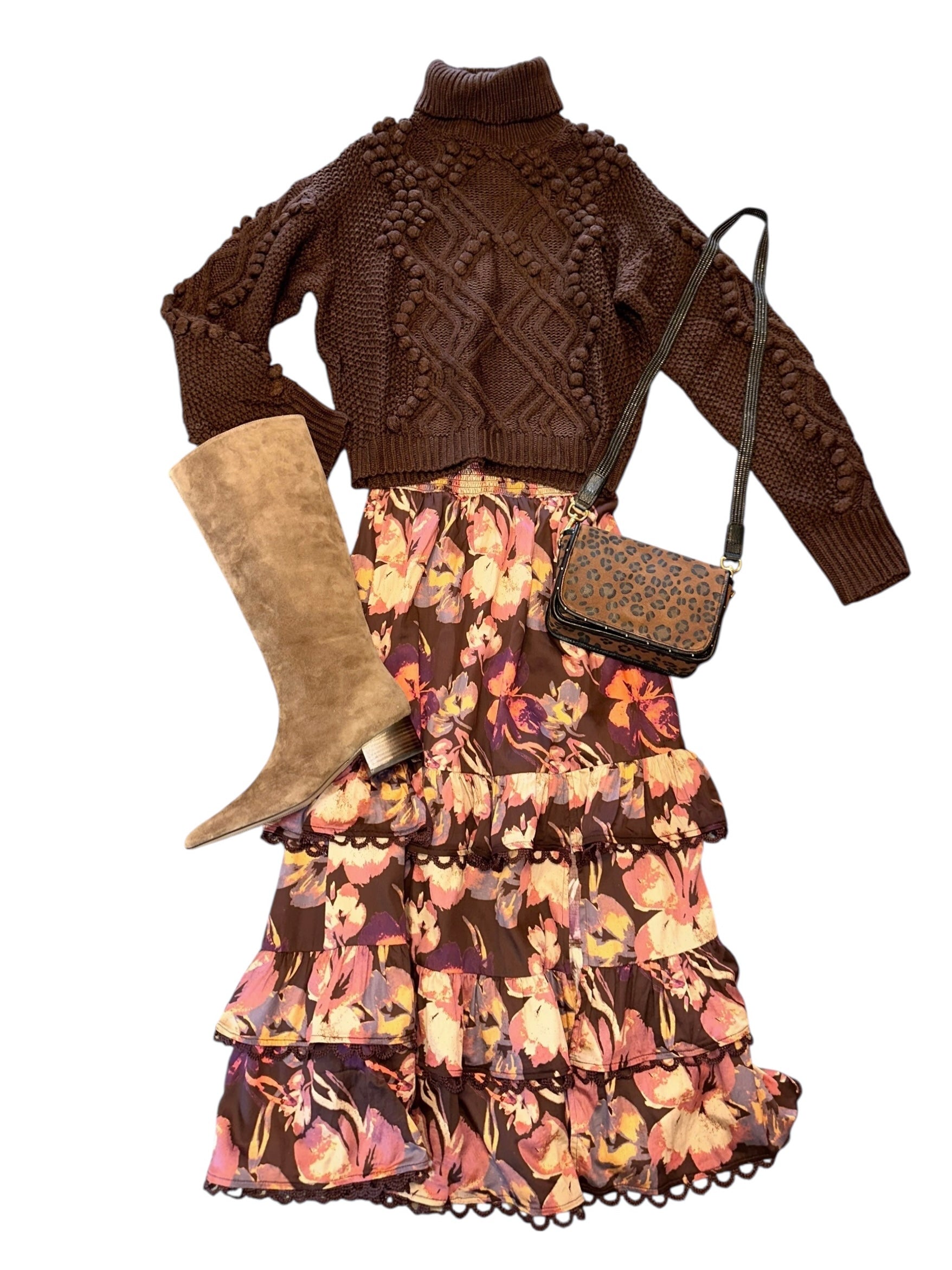 Georgia Midi Skirt in brown floral by Allison