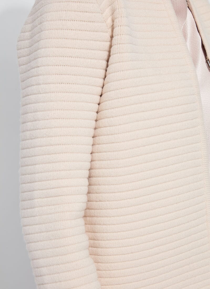 Made from Cozy Texture Yarn, the Marigold Cardigan Sweater Jacket features a hand-stitched hook and eye front closure; 4-way stretch with a soft end-feel; and true-to-size fit. Style this vintage-inspired cardigan sweater jacket with the Aisha High Neck Draped Blouse and the High Waist Vegan Leather Wide Leg pant. Machine washable. Store folded, never hung.