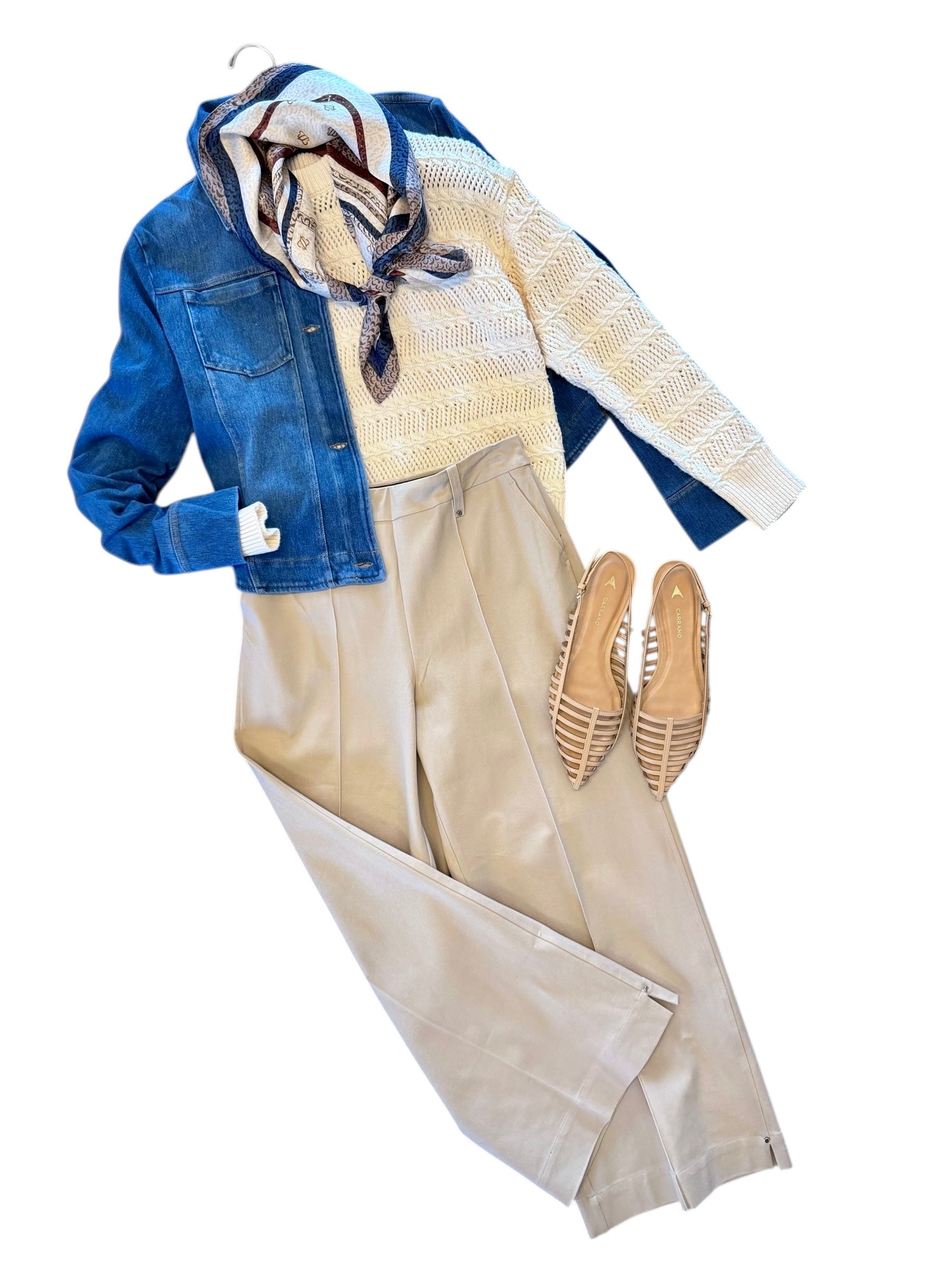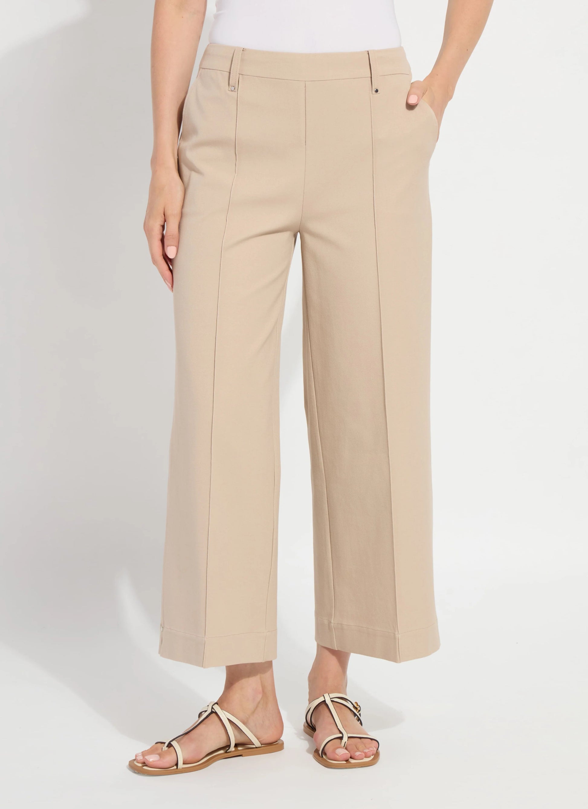 The Miranda Straight Leg Trouser, made from 4 Way Stretch Twill, offers a cropped wide leg, concealed patented waistband, functional side pockets, patch back pockets, and a wide hem accented by hem slits and high-shine Silver studs. Relaxed and elevated with nice drape, the Miranda Straight Leg Trouser styles nicely with the Evie Scoop Neck Tank and Raelyn Short Slv Denim Blazer.