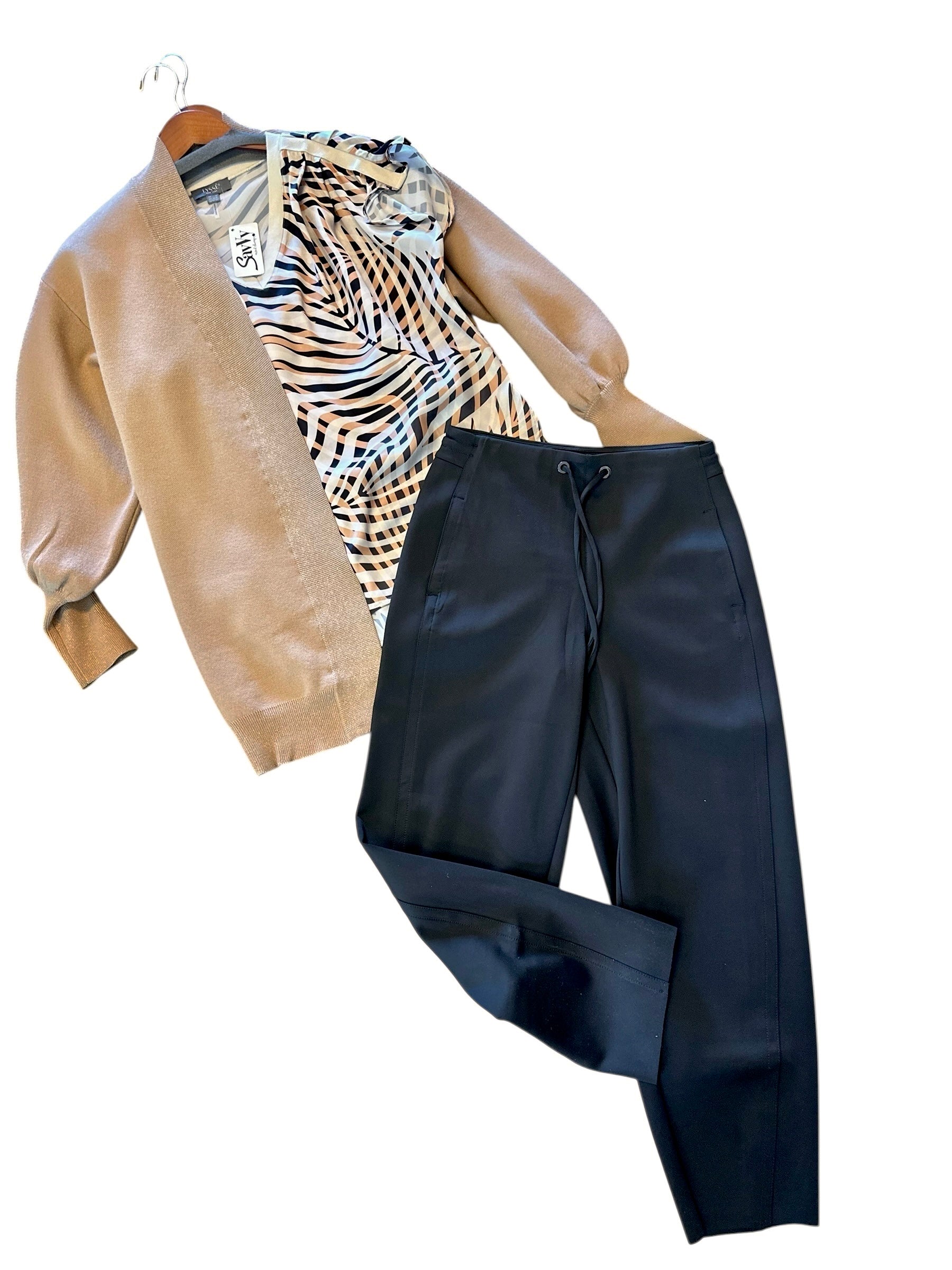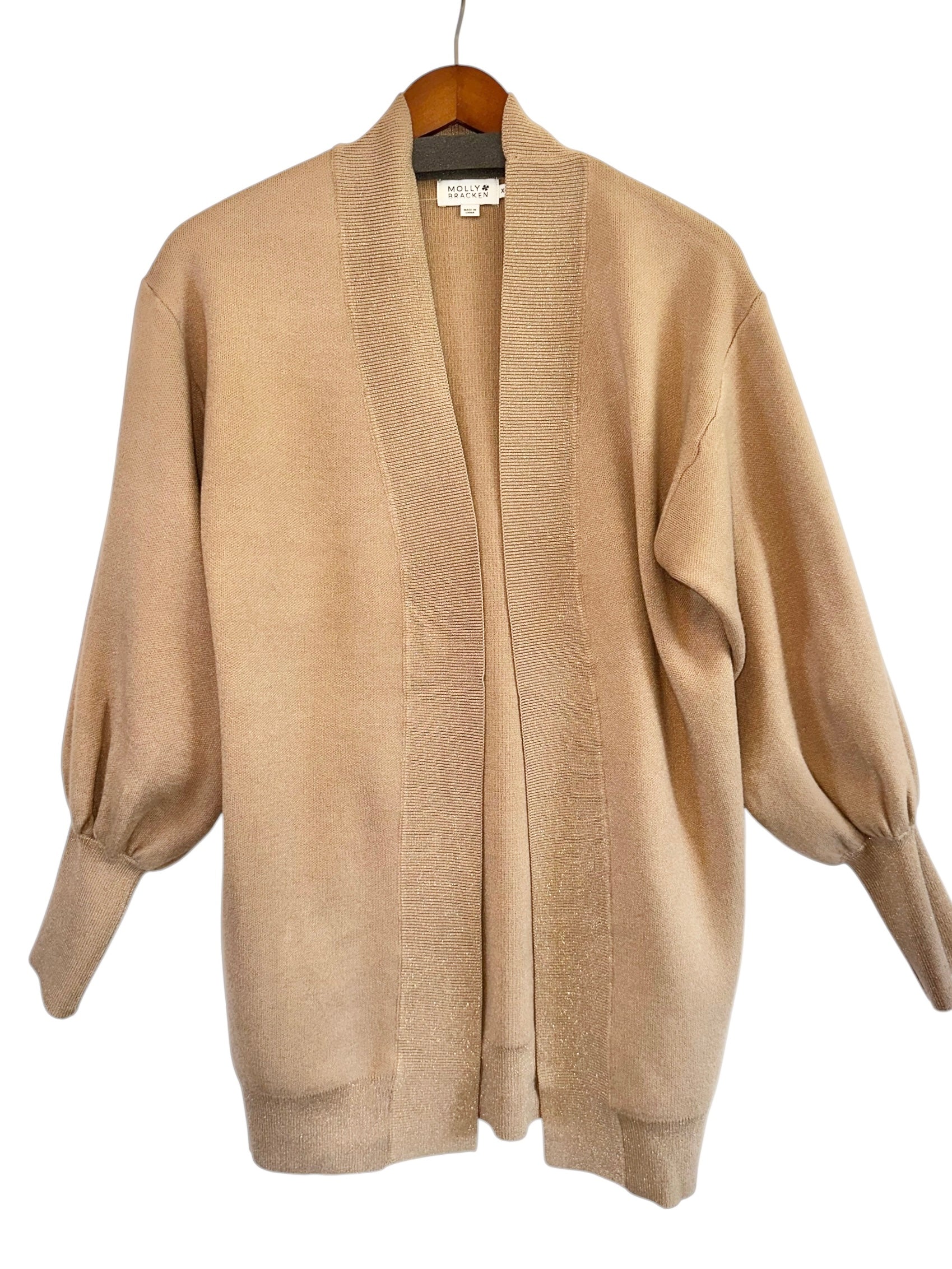 Elevate your style with the golden beige Open Cardigan by Molly Bracken. The versatile design allows you to wear it as a cardigan or as separates with coordinating pants for a chic and effortless look. The added Lurex accents add a touch of glamour to any outfit.