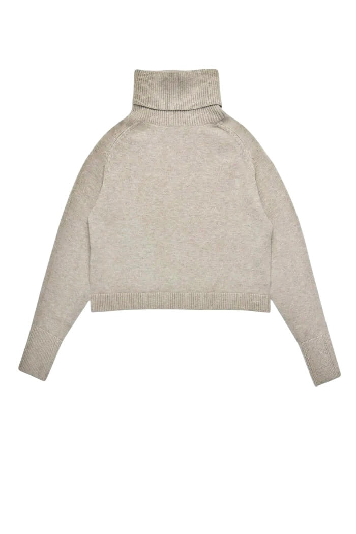 Stay cozy and chic in the Pugliese Sweater by Deluc. This light grey mélange turtleneck features long raglan sleeves and a relaxed fit that’s perfectly cropped for a fun, flirty look. Whether you’re layering up or wearing it solo, its softness and style make every outfit a win. Modeled at 5'9" wearing size S, it’s designed to keep you comfy with a playful edge.