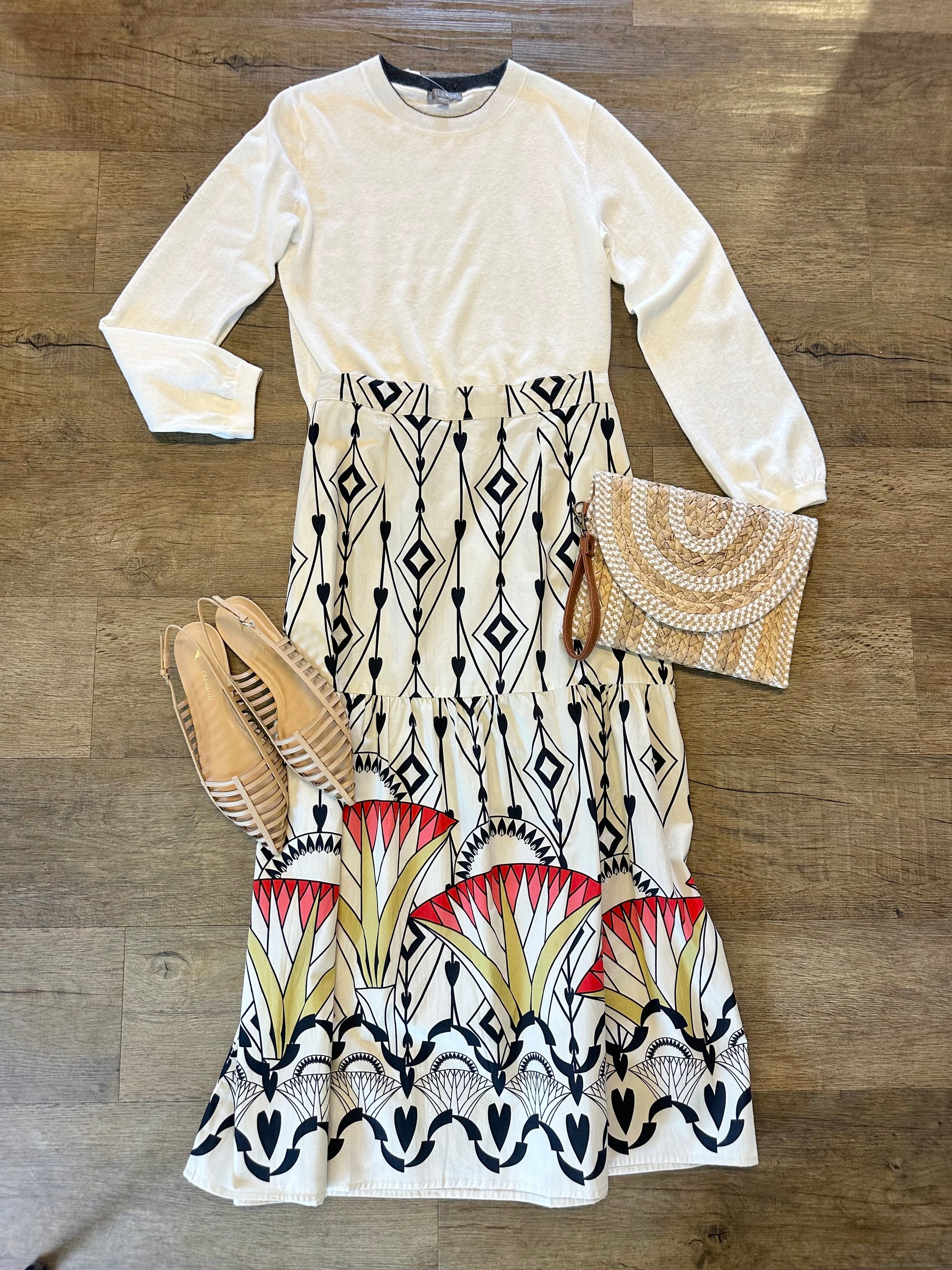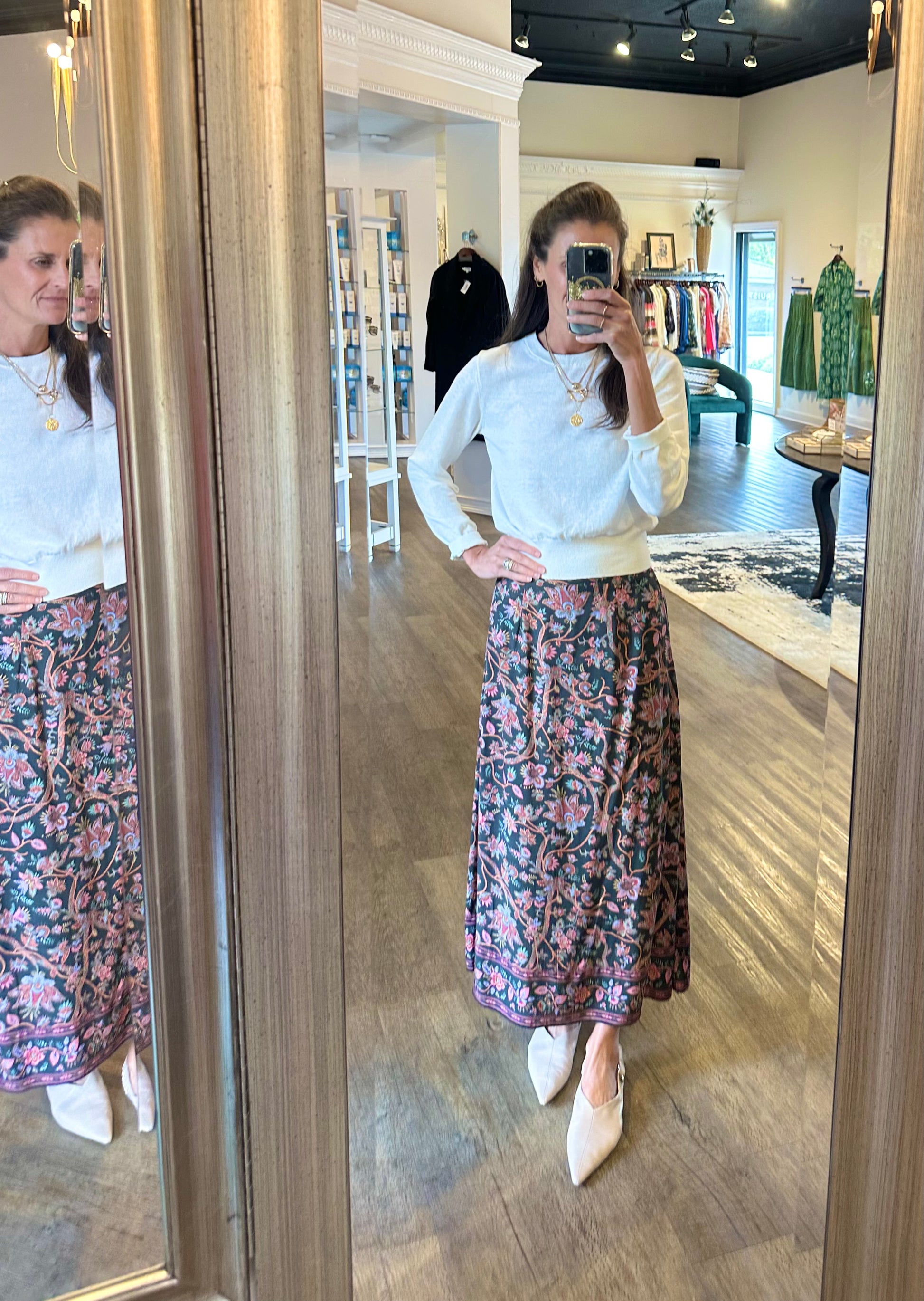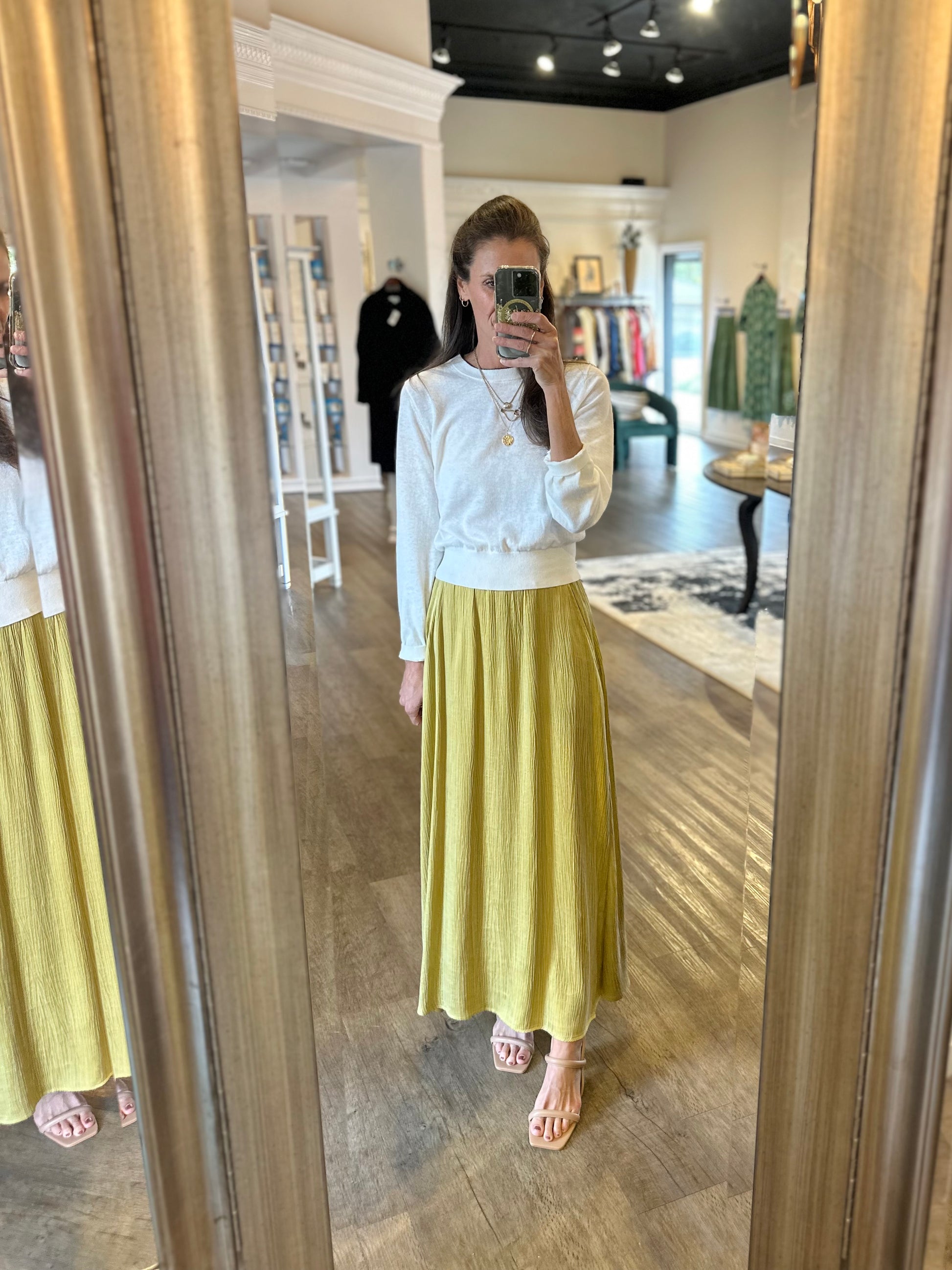Shirred Sleeve Crewneck Sweater in ivory by Lilla P
