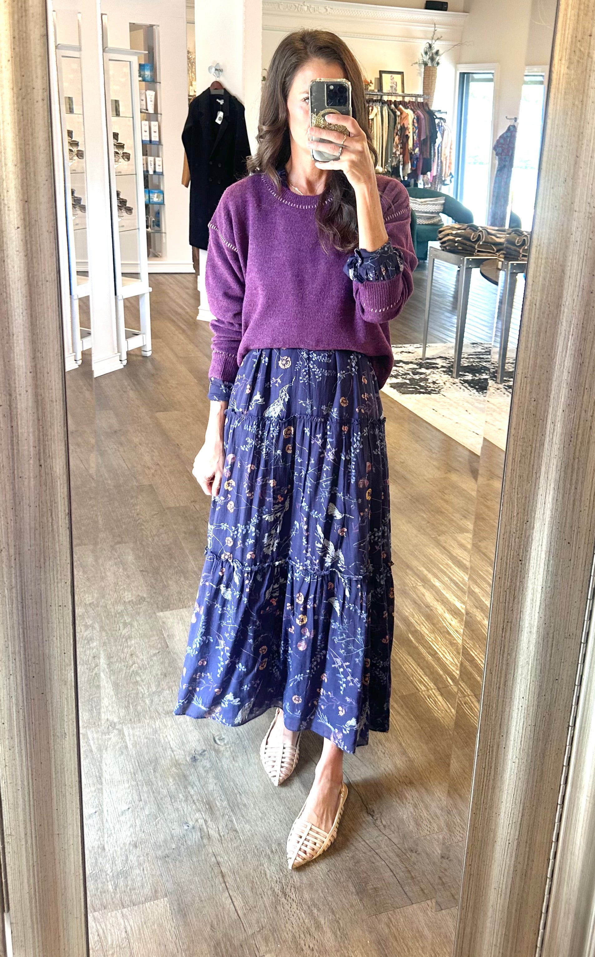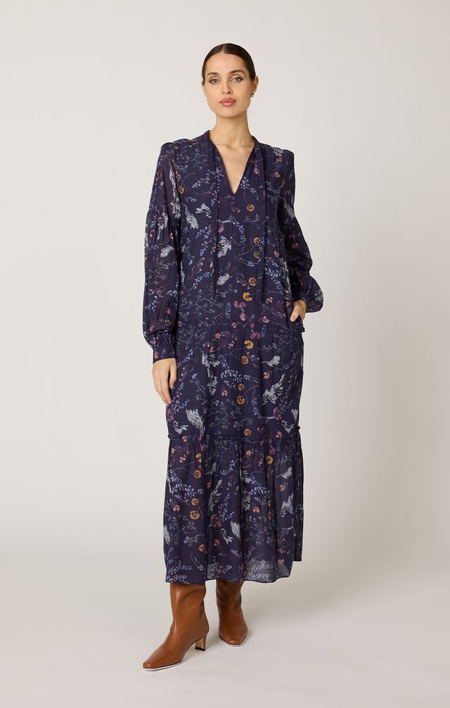 Crafted from a sustainable blend of organic cotton and viscose, the Sunny Ankle Dress in Viviana print is a romantic, feminine silhouette designed for everyday elegance. This midi dress features a long sleeve, drop waist, and an effortless shift shape skirt that moves with you. Ethically made and thoughtfully detailed, it’s a versatile piece perfect for day-to-night styling.